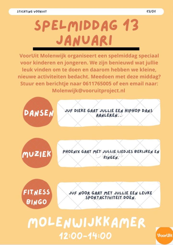 Op zaterdag 13 januari in de Molenwijkkamer